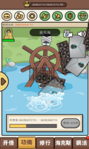 2、在这里,你可以用筋膜枪敲木鱼积攒功德,用循环放生机积德行善。