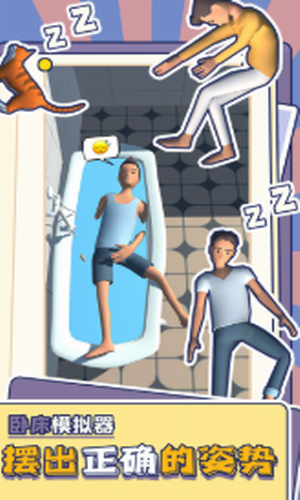 也许你能感受到自然醒来的乐趣。你的床不会骗你的。卧床模拟器中文版是一款休闲益智类手游,游戏的玩法非常的简单,玩家们将在游戏的各个场景中体验睡眠的感觉,在这里找到合适的姿势就可以睡觉了,只有舒服的睡姿才能够做一个好梦,你可以随意控制身体,来体验不同姿势的睡眠动作。极具挑战性的玩法设计,让你深刻体验身体的变化,分享不同的乐趣。在各式各样的场景之中体验睡觉感觉,找出合适的姿势与位置开始躺平睡觉,赶紧下载体验一下吧。