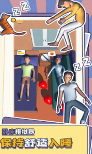 1.床上模拟是一款卡通3D风格的休闲模拟游戏,
