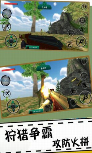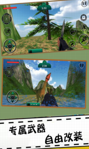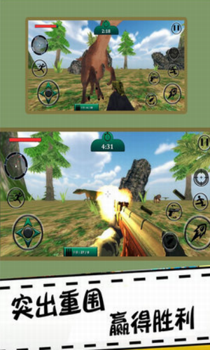 2、玩家在疯狂狙击动物游戏中是一名狩猎者,面对恐龙袭击作出反抗,拿起手中的枪射击它们