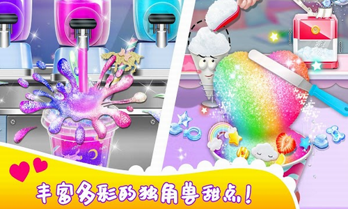 2、独角兽的美食制作,自由搭配原料,精美的装饰唤起彩虹魔法。