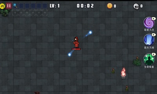 2、乱动模式有大批的敌人不断的向你攻击,手指控制角色在场景里不断的转圈发射不同的技能进行攻击。