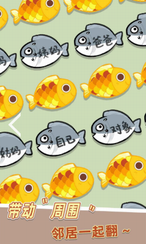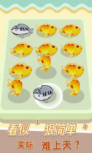 这里的每一关都是不错的,总能给你带来从未有过的新奇趣味。咸鱼翻身啦官方版是一款好玩的休闲类游戏,在这里可以不断的开阔自己的思维能力,找到最佳的答案将小鱼彻底的进行翻身,运用自己的能力将所有的小鱼进行翻身,顺利的进行游戏的通关,轻松的点击就可以揭开更多的谜团,在游戏里自由展开对战,全新的互动挑战,等你来学习,轻松完成,快速进行解密,丰富多样的游玩内容与唯美的画面风格,玩起来十分的魔性,游戏的玩法以及内容多样,快来下载体验快乐吧!
