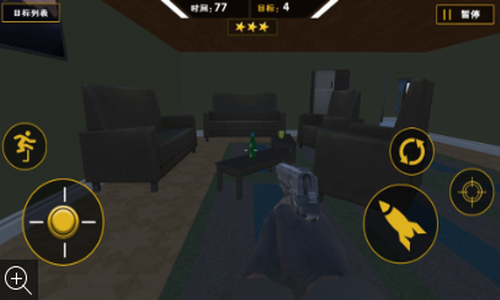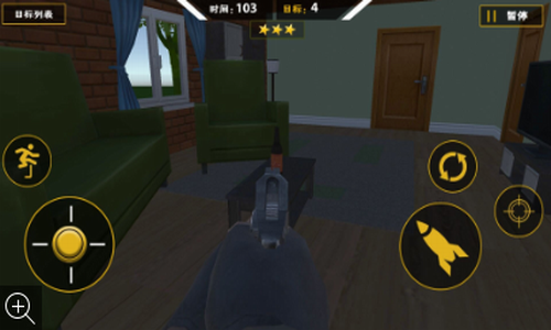 2、自由的移动和射击,在隔壁老王家中尽情的破坏吧;