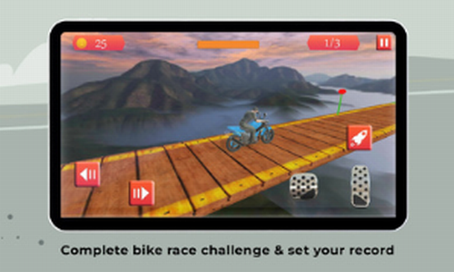 特技自行车赛车手特技游戏是一款模拟驾驶摩托车类手机游戏,你将化身为一个摩托特技表演选手,征服各种危险的赛道,这些赛道充满挑战性,非常考验你的技术,每一场挑战都充满惊险刺激,需要你不断的学习更高的技巧才能解决接下来的挑战,完成这些动作心理很有成就感,是一款非常有趣的游戏。