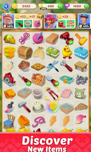 2、让原本单调的合并变得更有目的性,完成更多的任务,收集更多的家具,建造更多风格的房子。