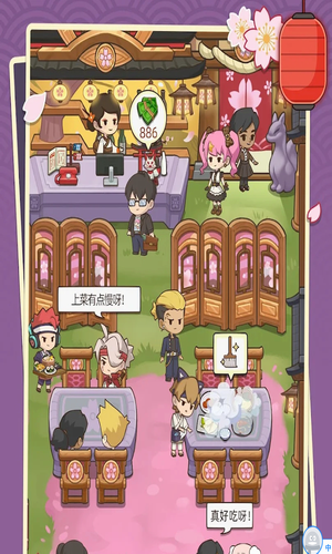 收集其他顾客的建议或者意见来不断的改进创新;梦想寿司店破解版是一款玩家期待已久的模拟经营类游戏,玩家在游戏里面拥有一间寿司店,要不断的去发挥自己的经营策略,才能让寿司店的生意变得更加的红火,同时也可以和小伙伴们自由的聊天,开放又自由的玩法模式,我们将会经营一家寿司店,通过不断升级店内的菜谱、装潢来为客人们提供更好的就餐环境,拥有非常有趣经营放置经营玩法,能够让玩家们在这里畅享经营挑战的欢乐,能够施展我们的策略思维畅享精彩经营之旅吧!