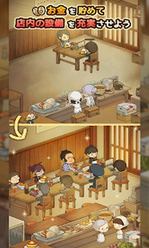 玩家在店里一边制作料理,一边和老奶奶一起给客人上菜。给客人呈上精心制作的料理,让他们满足而归。增加店内的设施,能让更多客人到店里来。本作卖点的“感动心灵”物语也值得玩家注目。随着游戏的发展,老奶奶和客人们的感动故事也会一并展开。