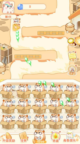 3、海量的关卡会给你带来更多不同的玩法,随着难度的提升你需要不断升级强化仓鼠。