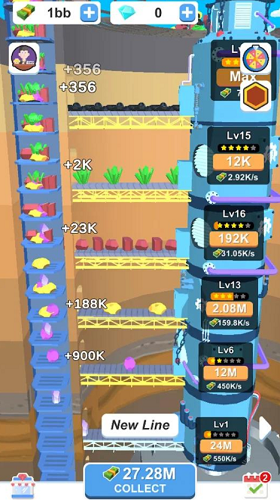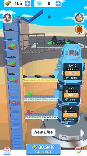 2、您可以解锁新设备以收集不同的矿石,高级矿石具有更高的价值。