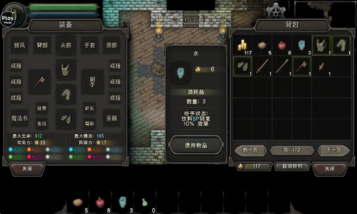 1、背包中可以储存很多的道具,一些作战掉落的都可以收藏起来,有用的