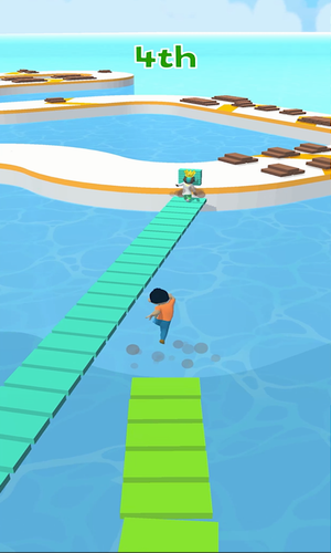 搭个桥快跑破解版是一个竞技类的跑酷手游,游戏中的路都不完整一不小心就会掉下去所以你要靠自己用木板搭起来一条路才行,还有就是弯弯绕绕的路你直接可以横在中间节省时间你就可以超过你前面的认了。在这里你需要不断挑战各式各样的难度关卡,这个过程会有你想不到的刺激,注意遇到障碍物的时候可得要灵活躲避,来 在最短的时间内成功搭上最长最优秀的桥吧!