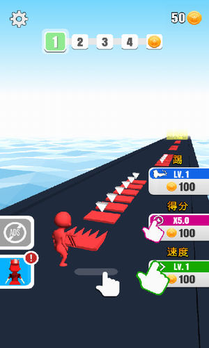 3、收集与小人颜色一样的砖块,如果碰到其他颜色的方块会消减已收集到的方块的数量;