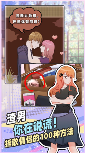 拆散情侣大脑洞破解版是一款非常有趣的休闲解谜类游戏,游戏画风清新,玩法简单,玩家可以扮演情侣中的任意一位,然后进行各种找茬的操作,通过各种线索寻找出另一半欺骗你的情况,相信有些场景能够带给你新奇的感受。此外,游戏的操作也非常简单,玩家只需要通过简单的点击就可以游玩这款游戏了。感兴趣的朋友可以点击下载。
