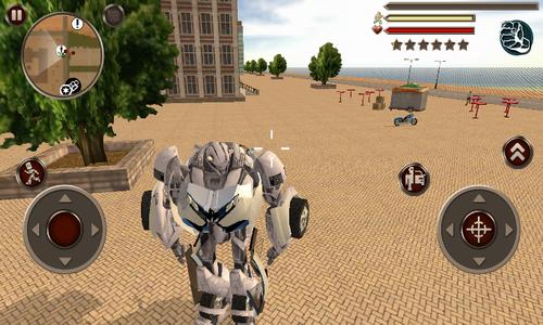 3、你的机器人配备了非常强大的子弹射击系统,可以不断的射击和摧毁黑帮敌人守护安全;