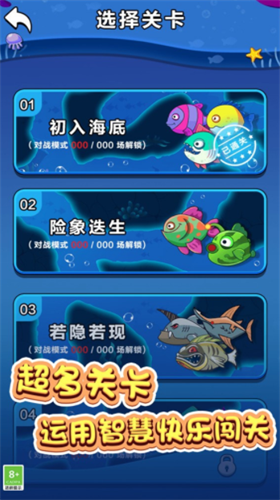 1、鱼鱼历险记游戏里面可以对抗各种生物敌人,获得奖励,获得很多好处。