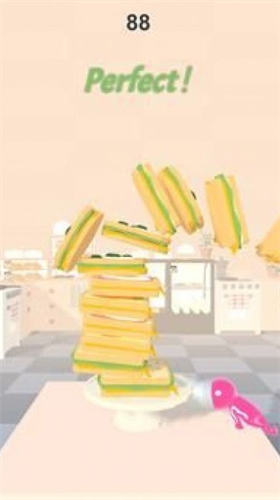 2.一定要时刻保持中心位置,这样才能叠加更多的面包数量。