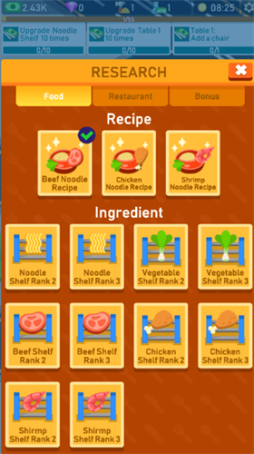 1、富多样的食材和菜品,可以通过不断解锁和升级获得更多的收益和满意度。