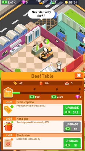 2、游戏中,玩家需要不断扩大他们的面馆业务,增加新客户,增加营业额。快来试试吧。