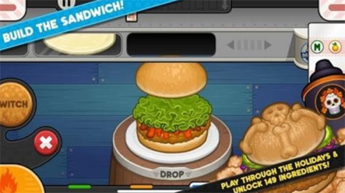 4、动感纷呈的美式漫画卡通风格呈现,门类齐全的汉堡包制作攻击任你自由使用。