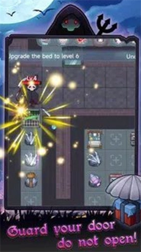 3、在每个房间合适的位置放置炮台抵挡恶魔的入侵,你要升级你的大门,将你的大门升级到最强才能够防止恶魔进入你的房间。