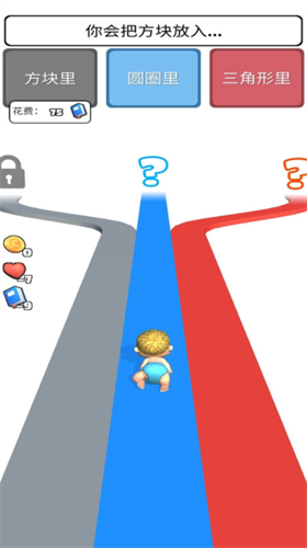 4、游戏画风非常的有趣卡通,道路上有着三种属性可以自由的选择。