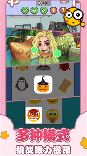 2、游戏中有着很多新的找茬玩法,这里的每一个过程都可以提高你的眼力,你要去寻找更多的破绽。