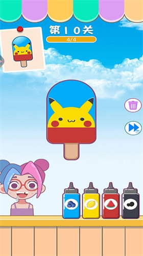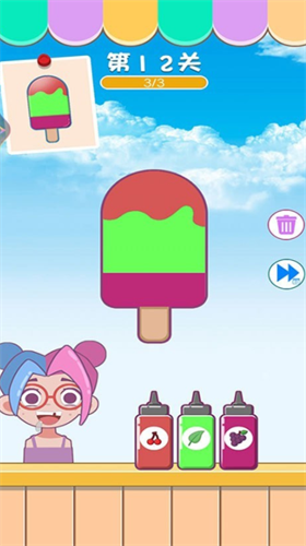 4、根据不同的图案设计不同颜色的冰淇淋,玩家可以去冰淇淋玩有趣的关卡。