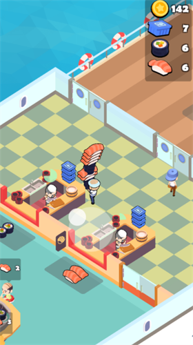 海上寿司店破解版无限金币版是一款非常好玩的模拟经营类游戏,在这款游戏中,玩家们会来到一艘游艇上,在这里我们将经营一家寿司店,非常有趣。在这里每天都有着顾客来到这里吃东西,我们要用新鲜的食材制作出许多美味可口的寿司,并且当材料不够的时候,我们还得在海边进行钓鱼,当然这个操作我们可以通过雇佣店员的方式来解决,非常方便。此外,我们还需要建立一个旋转寿司输送平台,客人吃起来更加方便。感兴趣的朋友可以下载体验一下。