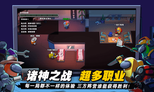 8、首款内置超多职业的太空狼人杀,警长小丑医生间谍… 让每一局都充满悬念,诸神之战等你来体验。