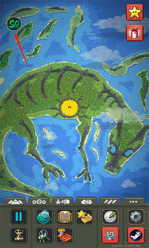 1、这款手游的美术是2D像素风格,看起来非常简单,上手没有什么铺垫,也没太多的引导,直接面对随机生成的一个世界,这个世界有海洋,有陆地,偶尔还会有一些正在喷发的火山,似模像样,玩家可以用手机放大屏幕,展现地形地貌的细节,设计很不错。