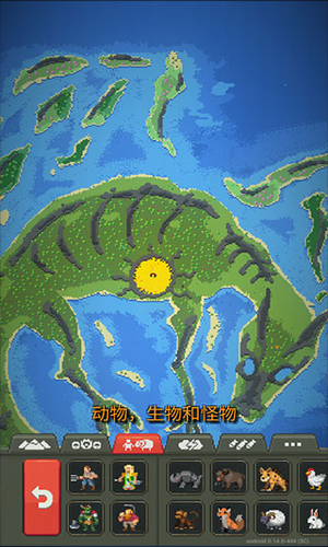 4、除了放置一些动物之外,玩家还可以改造这个世界的地形,比如说将各个陆地之间连接起来,又比如说建造一个高山,放置一些金矿,创造一个沙漠,呼风唤雨,打雷放火,毕竟是沙盒游戏,玩的就是一个想象力,也让玩家彻底体验了一把上帝的感觉。