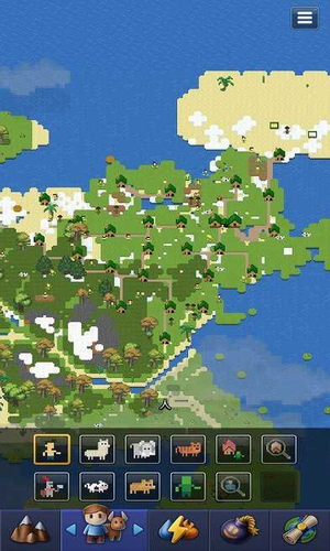 4、除了放置一些动物之外,玩家还可以改造这个世界的地形,比如说将各个陆地之间连接起来,又比如说建造一个高山,放置一些金矿,创造一个沙漠,呼风唤雨,打雷放火,毕竟是沙盒游戏,玩的就是一个想象力,也让玩家彻底体验了一把上帝的感觉。