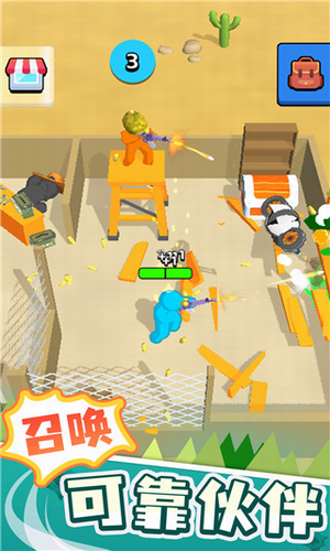 2、打败一群又一群的僵尸橡皮人,解锁武器和士兵与你共同作战,设置全新避难所