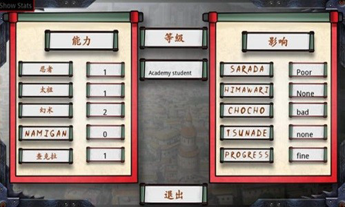 3、金钱最快获得方法为去大门做任务,b级和a级的第二个选项,打过后第一个选项,b级一次500a级一次1000.(需要把属性刷的比较高前期体术最好刷)