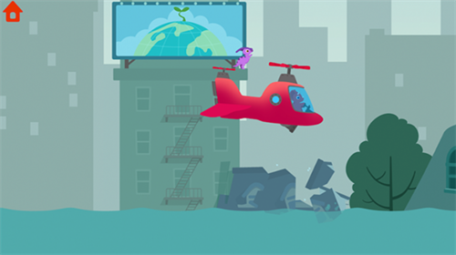 3、恐龙之家现在正在探索这个岛。驾驶你的直升机找到被困的恐龙!救救他们!