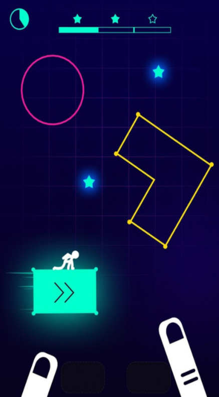 跳跃,翻转和滑动你的火柴人身体从一个霓虹色的形状到另一个,使它们发光和发光。