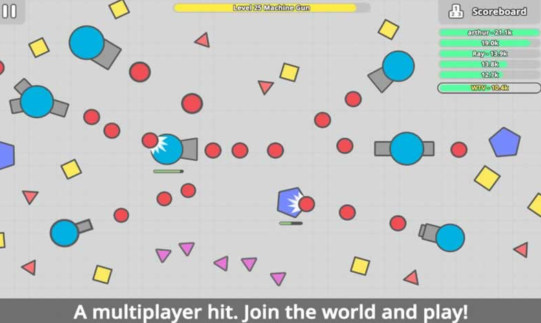 《坦克大作战(Diep.io)》的玩法和其他几作完全不同,但在概念上,都是以经典小游戏结合联网而产生的巨大游戏性,玩家将在游戏中操控一辆属于自己的坦克,击败眼前所有的敌人,成为霸主。