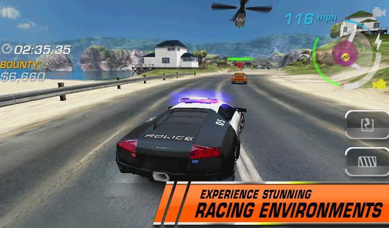 《极品飞车:热力追踪破解版14 Need for Speed Hot Pursuit》,炽热的比赛给你爽翻天!手游推出了各种赛车的方式,包含警车追匪,两人竟速,有超出15种左右的独特警车,也有全球各大著名生产商的經典名车,体会极品飞车一览炫酷最極限的手游界面。极品飞车:热力追踪是EA开发的一款高质量的赛车游戏,这款游戏如同PC端的一样,警匪追逐战是最大的看点和体验,同时还有不错的联网功能。支持通过WiFi无线网络或者是蓝牙来进行对战游戏;如同PC端游戏一样,你能够选择你的使用的“武器”:比如EMP(电磁脉冲)、路障、钉子等等。新增的视网膜技术将会带给你极具冲击力的视觉效果。