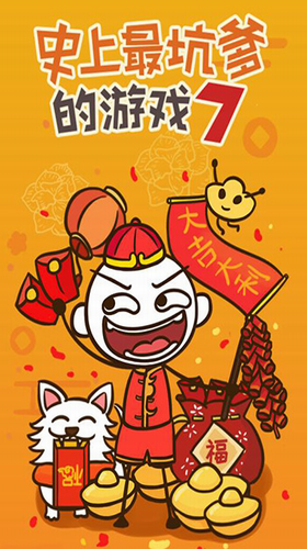 史上最坑爹的游戏7破解版目前该游戏修改为内购破解,点击购买取消支付即可。这是一款与众不同的虐心休闲益智游戏,是“坑爹”系列第七部,游戏延续以往的滑稽,风趣,幽默,坑爹元素,设计了又一系列让你一脸懵逼,无可奈何以至于捧腹大笑的关卡陷阱,让玩家摸不着头脑!游戏画面效果精美,有着各种各样关卡,操作简单易上手,在游戏中玩家需要通过各种无厘头的关卡任务。除了在界面风格、关卡内容的设计上更加的新颖,但在玩法上还是采用那么一如既往的恶搞的元素,喜庆的界面场景设计,轻快的趣味玩法,给人十分上瘾且又脑洞大开的感觉,24个科学无法解释的春节事件,全新的坑爹玩法,《史上最坑爹的游戏7》带你去玩玩:斗狮黄飞鸿,路遇劫匪,隔壁老王来解围,回家推销又上门…… 一系列滑稽可笑的春节趣事,裹着其乐融融的气息迎面扑来,其玩法新颖丰富有趣,别看虽然简单但是还是非常虐心的,操作简单流畅易上手,极具新年气息的画风设计。