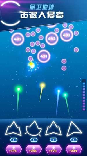 为了完成入侵地球的任务,来自宇宙的侵略者将会不断涌现,并在战场上和你正面冲突。指挥你的太空战舰充当防御塔,射击消灭外星人,并收集它们掉落的金币。 随着时间推移,敌人的力量将会越来越强大,但激光枪可不是免费的!你需要花费金币,升级太空战舰的攻击力,以面对越来越大的挑战。