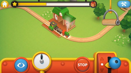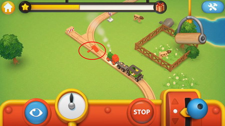 想要完成火车的驾驶,首先先点击火车,此时会出现以下的界面,而摇杆的操作即使控制火车移动的操作按钮,“STOP”是立即停火,这对于固定的站点会有一定的帮助,再而点击眼睛,便可使用不同视角的转换,除了上帝视角,另外还有第一视角哦!