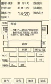 3、就算是生命健康值变成了0 也不会死掉,只要重新冲一个医院中醒来就好了。