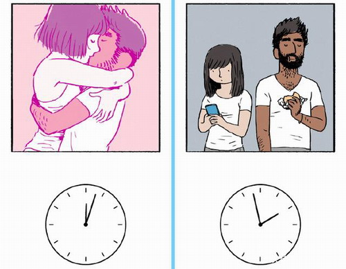 除了交谈外,还有两人从热恋归于平淡的过程,这个过程游戏并没有耗费大量的篇幅去描绘,而是用了一个时钟的交互。最开始两人甜蜜拥吻,但随着玩家拨动时钟,两人开始专注各自的事情。热情褪去后,只剩下平淡的生活。
