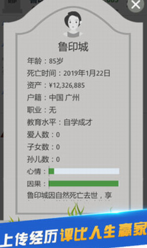 1、一款轻度模拟人生的休闲游戏,从婴儿到死亡的全部过程,你的选择将决定你的未来;