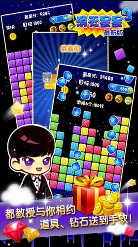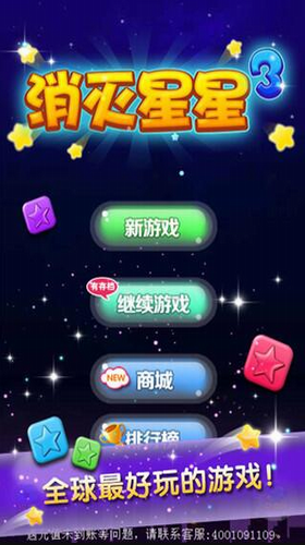 本游戏所有关卡都为无限关卡,高超的技术配合众多威力巨大的道具, 再加上无限复活,足以让您不断挑战自我,创造神话式的高分历史!游戏自动保存,随时随地想玩就玩,必将成为您手机常驻之必备休闲神作! 游戏特点 ? 游戏全部点击操作,操作简单,上手容易 ? 玩法有吸引力,一旦上手,爱不释手 ? 清新风格,休闲玩法,治愈游戏,休闲必备 ? 精美画面、绚丽特效,史上最美的消灭星星 ? 无穷关卡、给力道具,无限挑战 ? 无关卡限制,自动保存,随时随地想玩就玩 ? 自动复活功能,继续高分神话 ? 多种活动,海量任务,无限好礼免费领 ? 系统邮件统一发放,巨量奖励一键领取