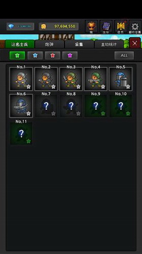 1、相同的士兵可以进行合成,级别越高能力越强,共有9个级别