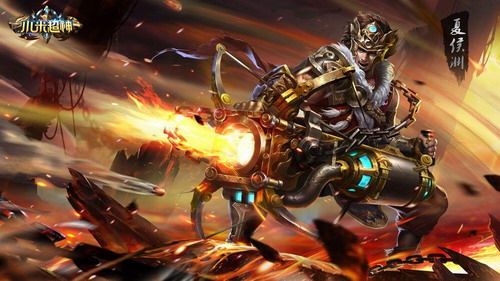 除了祝融之外,还有一位为输出而生的射手,夏侯渊。夏侯渊是一位后期几乎无敌的射手,大招开启后,拥有长达2200码的射程,额外提升10%/30%/50%的物理攻击力,同时攻击将变成范围伤害,满装的夏侯渊一炮五杀绝不是梦想。夏侯渊不止后期强到没朋友,前期同样也有一战之力,气弹冲击能够击退来犯之敌,而用气瓶布下的阵地,更是让对手望而却步。