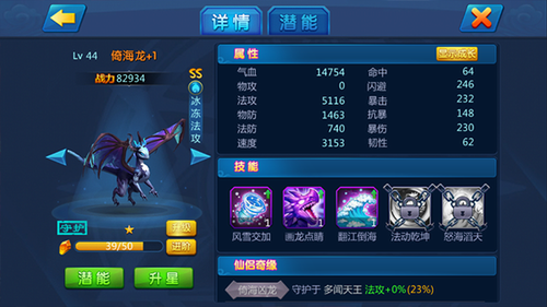 2.灵兽可以守护于徒弟,并在战斗中出战。3.灵兽拥有潜能,激活不同的潜能,能够获得不同的属性加成。