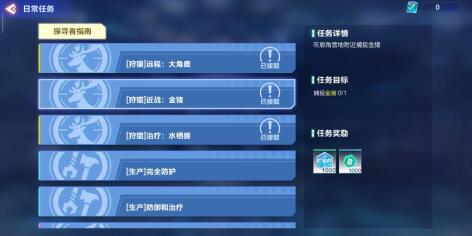 然后呢我们就需要升至15级才能继续主线任务,来完成公告牌任务。建议优先挑选“大角鹿”“金猪”“水栖兽”这几个任务。